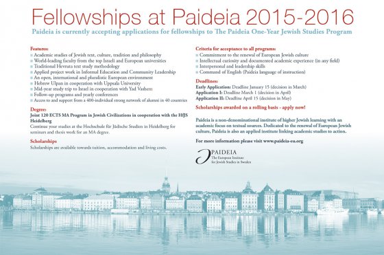 Paideia: Jelentkezés Zsidó Tanulmányok Programra 2015 / 2016