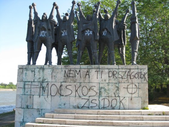 Uszító feliratokat festettek a Duna-parti mártíremlékműre