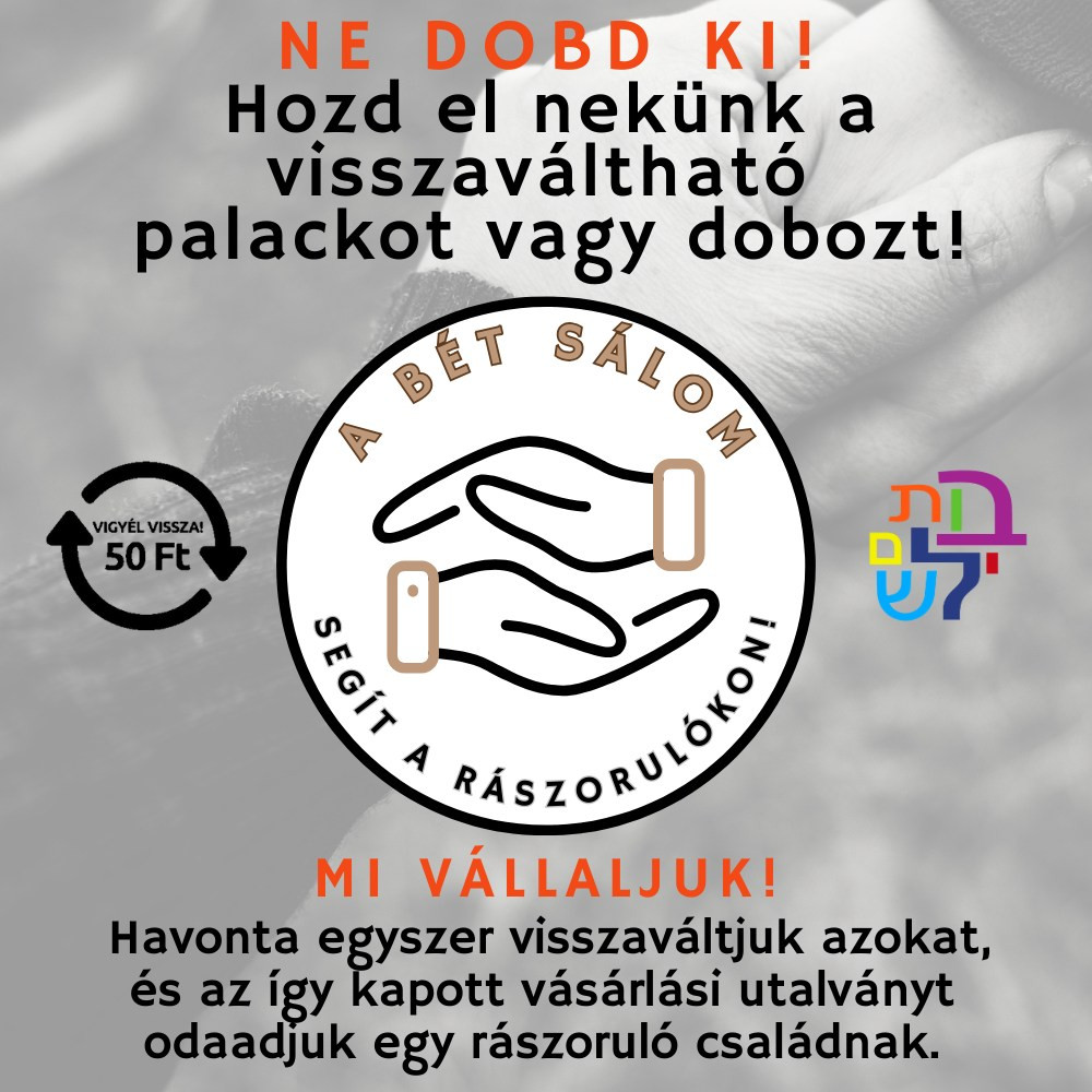 Bét Sálom: Rászorulóké lesz a visszaváltható palackok után járó utalvány